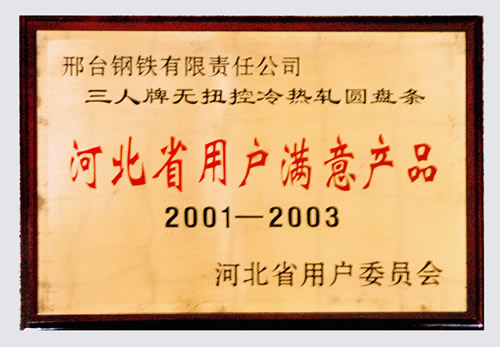 The Customer Satisfied Product of Hebei of hot rolled,torsion-free and controlled cooling wire of Three Person Brand from 2001 to 2003.