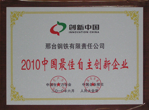 2010年10月,邢鋼榮獲“全國(guó)實(shí)施卓越績(jī)效模式先進(jìn)企業(yè)(2010年)稱號(hào)”。