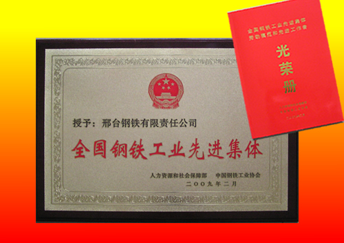 2009年2月,人力資源和社會(huì)保障部、中國(guó)鋼鐵工業(yè)協(xié)會(huì)授予邢鋼“全國(guó)鋼鐵工業(yè)先進(jìn)集體”榮譽(yù)稱號(hào)。