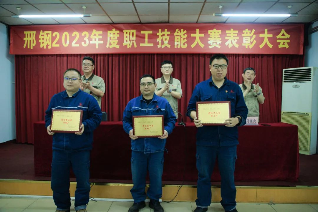 近日,邢臺鋼鐵有限責任公司在線材廠召開“2023年度職工技能比武大賽表彰會”,對取得優(yōu)異成績、表現(xiàn)突出的先進個人和集體進行表彰。公司總經理彭世丹、副總經理馬保良、韓清連為獲獎選手頒發(fā)榮譽證書并致賀。