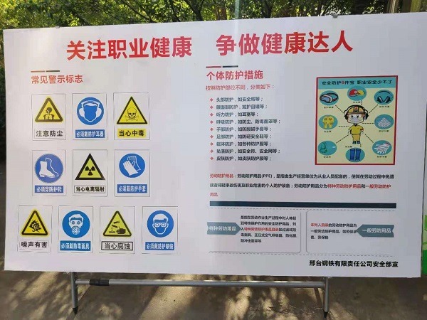 4月25日至5月1日是第19個(gè)《職業(yè)病防治法》宣傳周,邢鋼以宣傳落實(shí)《職業(yè)病防治法》、《健康中國行(2019-2030年)》,打造“美好型”企業(yè)為主線,扎實(shí)推進(jìn)職業(yè)病防治工作,普及職業(yè)衛(wèi)生知識,助力全體員工樹立職業(yè)健康理念,在企業(yè)內(nèi)部營造關(guān)注、支持職業(yè)病防治的濃厚氛圍。