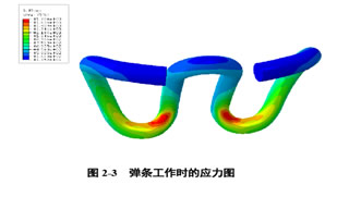 彈條是高速鐵路扣件系統(tǒng)中的核心部件。我國高速鐵路采用的是ω形彈條。彈條的作用是將鋼軌牢牢地固定在鐵墊板上,除必須有一定扣壓力外,還必須能承受來自鋼軌的垂向力、橫向力和縱向力的作用。在工作過程中,彈條不僅有彎曲變形,還有扭曲變形,本身呈現(xiàn)比較復(fù)雜的應(yīng)力狀態(tài)。下圖是在初始扣壓力下用有限元軟件分析的彈條應(yīng)力圖。從圖中可以看出:兩臂與中間兩肢連接處是變形集中的部位,急劇的彎曲變形引起彈條疲勞壽命降低。應(yīng)力最大處在彈條外側(cè)兩臂與中間兩肢連接之處,這也是彈條實(shí)際失效之處。
