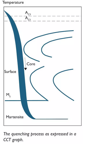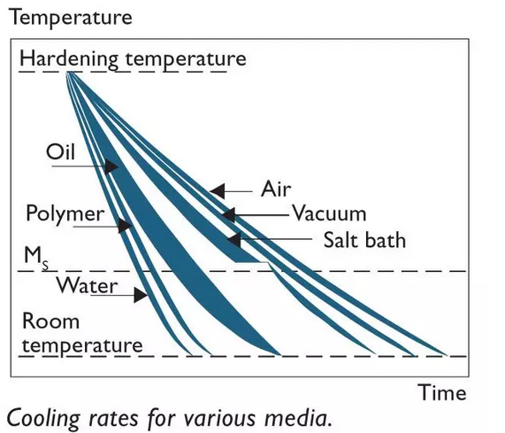 緩慢淬火導致部件的表面和芯之間的較小溫度差,并且不同厚度的部分將具有更均勻的冷卻速率。在低于Ms溫度的馬氏體范圍內淬火時,這是非常重要的。