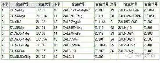 鋁合金按照加工方法的不同分為兩大類,即壓力加工鋁合金和鑄造鋁合金(分別以YL和ZL表示)。在鑄造鋁合金中又依主要加入的合金元素的不同而分為四個系列,即鑄造鋁硅合金、造鋁銅合金、鑄造鋁鎂合金和鑄造鉛鋅合金(分別以 ZL1X X,ZL2 X X,ZL3 X X和ZL4 X X表示),在每個系列中又按照化學(xué)成分及性能的不同而分為若干牌號。表3中列出了鑄造鋁合金國家標(biāo)準(zhǔn)所包括的幾種鋁合金的牌號。