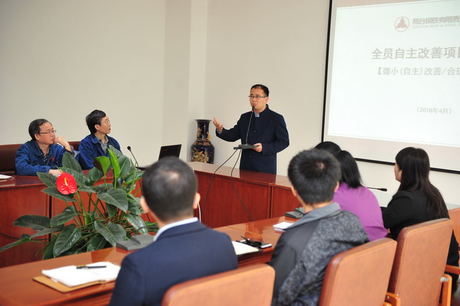 公司工會副主席、黨群工作部部長褚金富主持會議,作了《自主改善/合理化建議管理細則》制度發(fā)布,并就項目背景、目標及二季度項目策劃作了重點介紹。