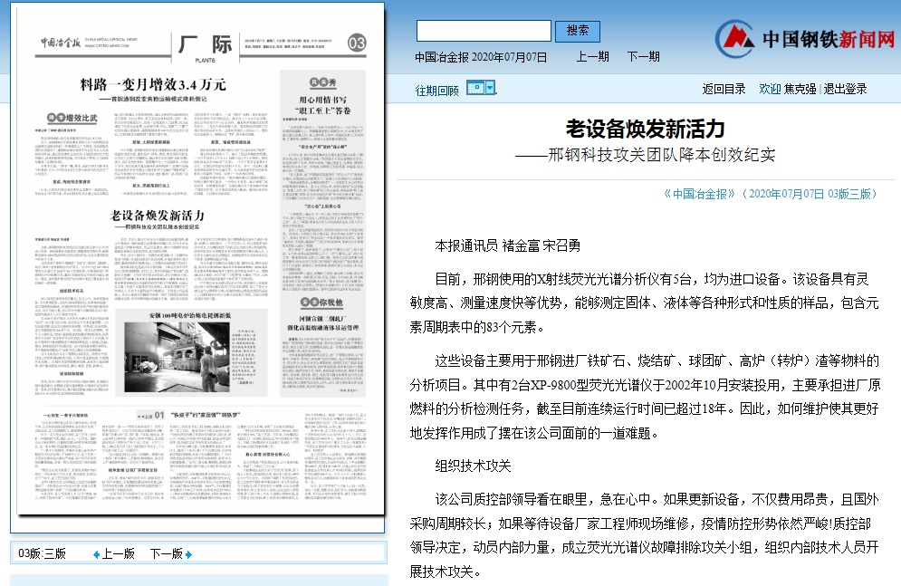 這些設(shè)備主要用于邢鋼進廠鐵礦石、燒結(jié)礦、球團礦、高爐(轉(zhuǎn)爐)渣等物料的分析項目。其中有2臺XP-9800型熒光光譜儀于2002年10月安裝投用,主要承擔進廠原燃料的分析檢測任務(wù),截至目前連續(xù)運行時間已超過18年。因此,如何維護使其更好地發(fā)揮作用成了擺在該公司面前的一道難題。
