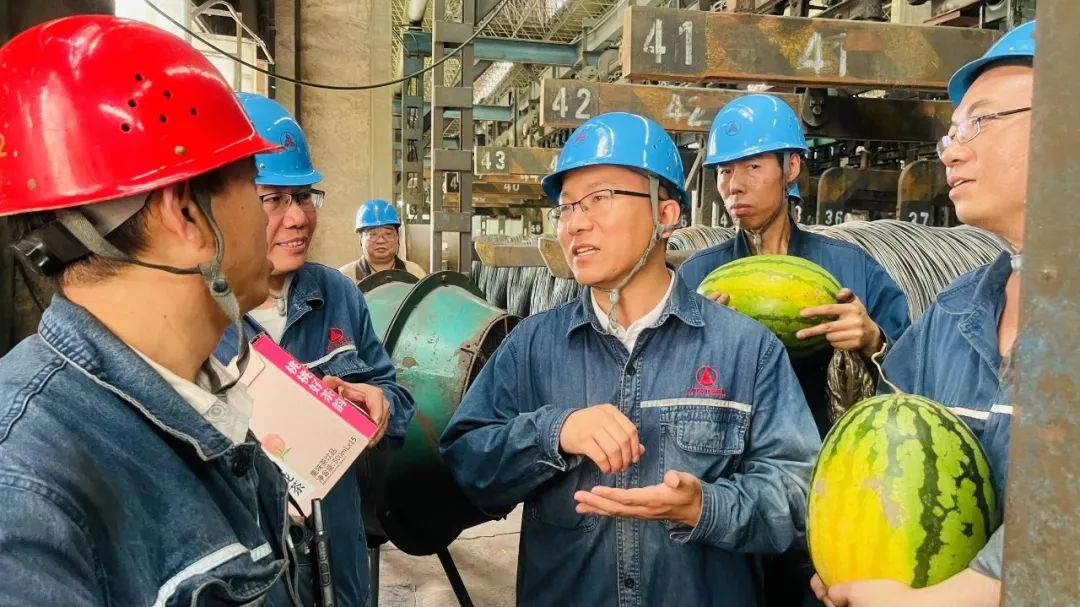 7月8日上午,為落實公司黨委書記、董事長張育明關(guān)于“把防暑降溫、關(guān)愛員工、安全生產(chǎn)等抓細(xì)抓實”的工作要求,夏日送清涼活動有序開展,公司向煉鋼、線材、煉鐵、燒結(jié)、動力、儲運高溫下堅守崗位的職工送去西瓜、飲料慰問品及防暑降溫必備物資用品,把企業(yè)的關(guān)懷送到職工心坎里,對大家一直以來為邢鋼辛勤付出表達(dá)謝意,并囑咐在崗員工在堅守崗位的同時注意勞逸結(jié)合,謹(jǐn)防高溫中暑,確保身體健康、安全生產(chǎn)。