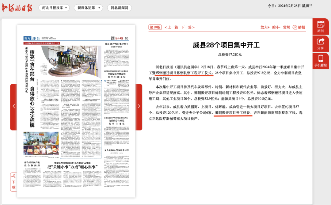 邢鋼搬遷項目既是威縣落實省市戰(zhàn)略部署,布局縣域新材料產(chǎn)業(yè)基地的重大決策,也是打造威縣300億元特鋼產(chǎn)業(yè)集群的龍頭項目、戰(zhàn)略支撐項目。