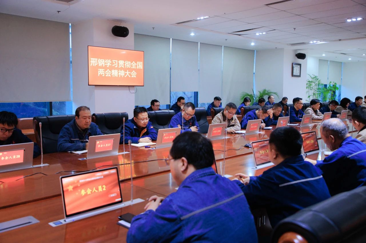 3月18日,邢臺鋼鐵有限責任公司組織召開專題學習會,專題傳達全國兩會精神。公司高管、中層管理人員和副主任師以上人員,分別在公司207會議室和威縣項目地參加會議。