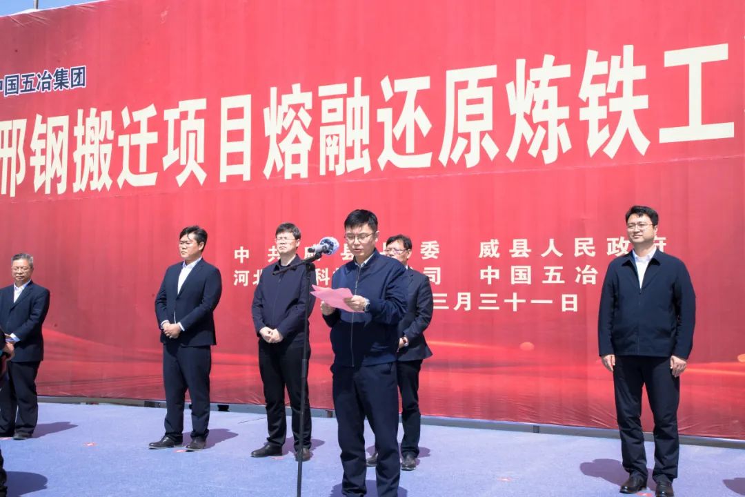 On March 31st, the groundbreaking ceremony for the Fusion Reduction Ironmaking Engineering of the Xingtai Steel relocation project took place at the Wei County project site. Cui Yaopeng, the Secretary of the County Party Committee, attended and delivered a speech, while Gao Kaiying, the Deputy Secretary of the County Party Committee and County Mayor, presided over the ceremony. Tan Xingtaishan, General Manager of Shanghai Company of the fifth MCC Group, and Peng Shidan, General Manager of Xingtai Steel, each gave their respective addresses.