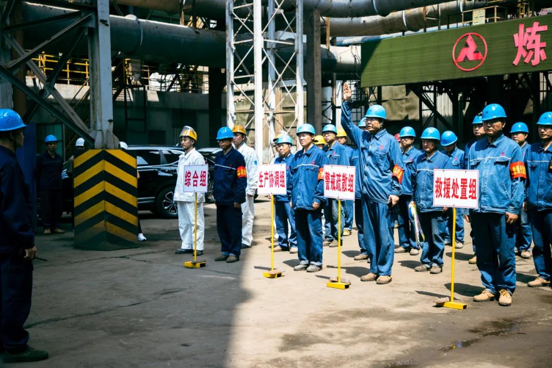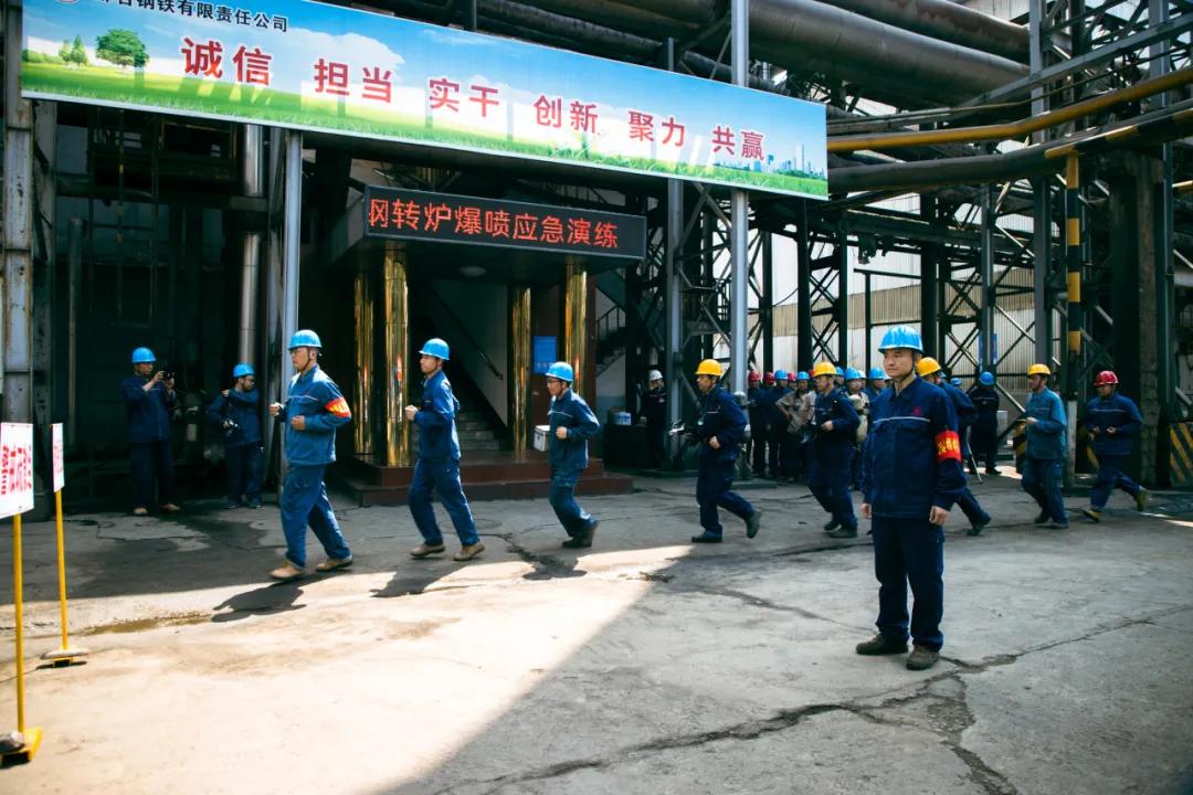隨后,參會(huì)人員一起現(xiàn)場觀摩了邢鋼高溫熔融金屬爆噴事故現(xiàn)場應(yīng)急處置演練。本次演練,模擬煉鋼廠加料跨天車向2#轉(zhuǎn)爐加廢鋼時(shí)發(fā)生爆噴為背景,演示了事故上報(bào)、安全疏散、預(yù)案啟動(dòng)、現(xiàn)場搶險(xiǎn)、應(yīng)急救援等環(huán)節(jié)。