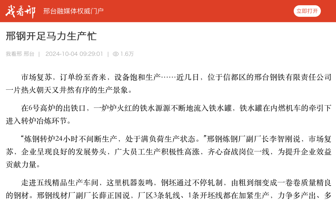 市場復(fù)蘇,訂單紛至沓來,設(shè)備飽和生產(chǎn)......近幾日,位 于信都區(qū)的邢臺鋼鐵有限責任公司一片 熱火朝天又井然有序的生產(chǎn)景象。